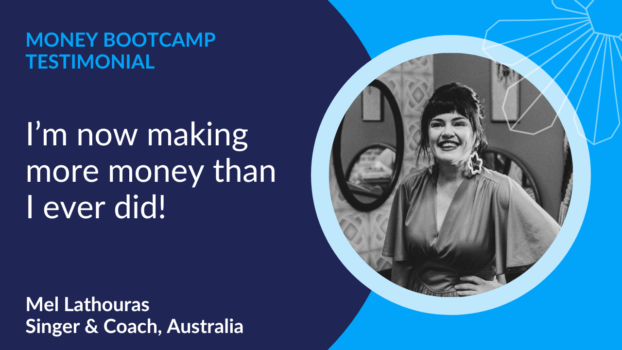 Even though things were tight, the Bootcamp work not only improved my financial situation but also made me increasingly proud to be a full-time creative business owner who could pay my bills. After 12 months of doing the work (and not perfectly) - tracking, decluttering, interrupting old patterns - I now have structure around my finances and am consistently bringing in $8K/month of revenue. Last month (Feb 2024), I came close to $15K. Not bad for a Singer and Teacher living in Queensland. I’m now making more money than I ever did with a full-time high school teacher salary.
